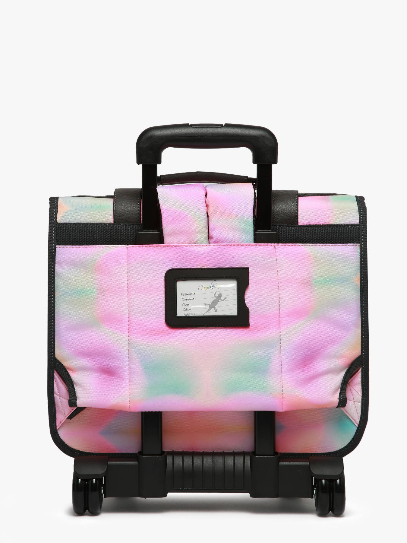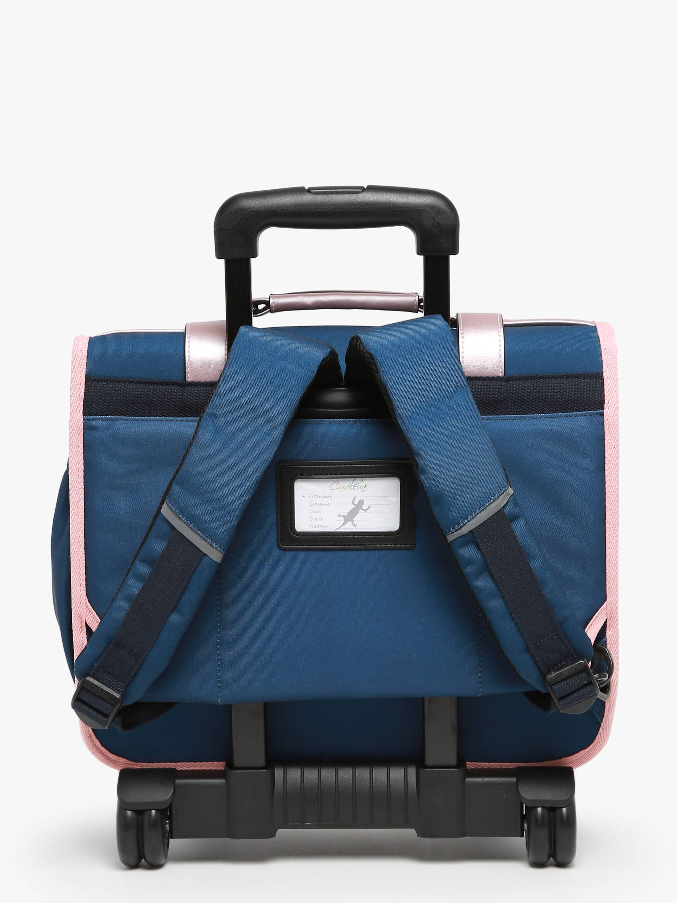 Deze boekentas op wieltjes uit de Vintage Fantasy collectie van het merk Caméléon heeft een breedte van 38 cm. Ideaal voor het 1ste, 2de en 3de leerjaar! Dit model heeft een duidelijke vintage look, dankzij de twee voorvakjes in lederlook en de riempjes met gesp. Deze boekentas beschikt over twee compartimenten, die schriften (24x32 cm) en schoolboeken van A4 formaat kunnen bevatten. Onder de overslagflap bevindt zich ook een uniek opbergvakje, met een gratis liniaal! De twee vakjes vooraan sluiten met rits, en zijn ideaal om een snack of andere kleine spulletjes in te stoppen. Dit model beschikt ook over een naamlabel aan de achterzijde, en kan makkelijk gesloten worden dankzij een dubbel kliksysteem. Voor optimaal comfort zijn de rugzijde en schouderbanden gewatteerd. Dankzij enkele reflectoren kan uw kind zich ook veilig in het verkeer begeven. De schouderriemen dienen te worden opgeborgen in het rugcompartiment bij gebruik van de wieltjes. Een extra flap schermt de wielen af wanneer de tas op de rug wordt gedragen.
