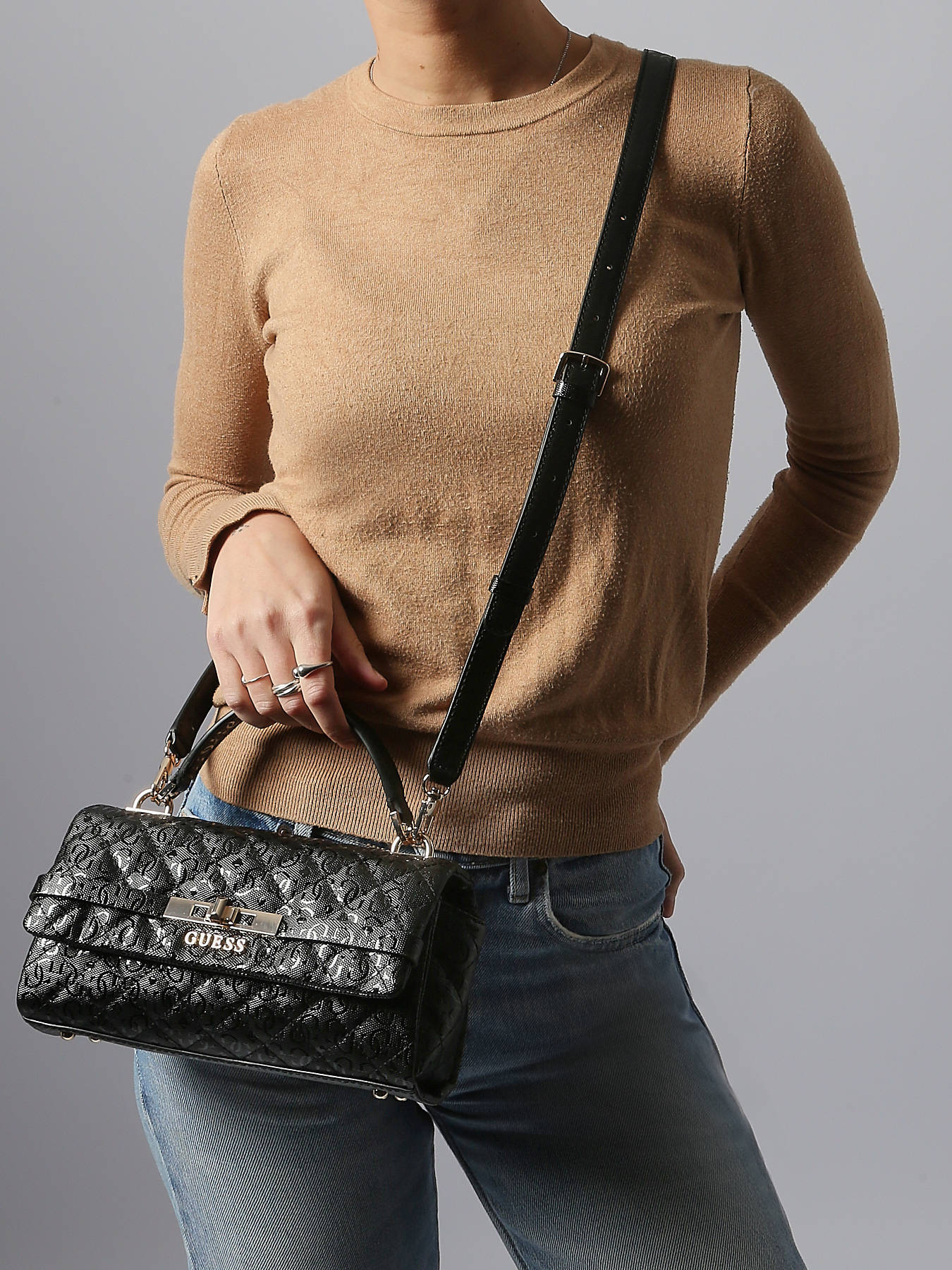 De handtas Guess Idra overtuigt met een elegant ontwerp en praktische functionaliteit voor dagelijks gebruik. Gemaakt van gecoat canvas, combineert hij duurzaamheid en verfijning, trouw aan de verfijnde uitstraling van het merk. De tas kan zowel aan de hand als aan de schouder gedragen worden dankzij een verstelbare en afneembare schouderriem, terwijl het handvat van 8 cm optimaal comfort biedt. De magneetsluiting zorgt voor een vlotte en veilige opening. Aan de achterkant is een vak aanwezig voor snel toegang tot je essentials. Binnenin zorgen drie goed gestructureerde compartimenten, een ritssluitingvak en zes vakjes voor bankkaarten voor perfecte organisatie. Elegant, functioneel en modern, de Idra-tas combineert stijl en praktisch gebruik met onweerstaanbare charme.
