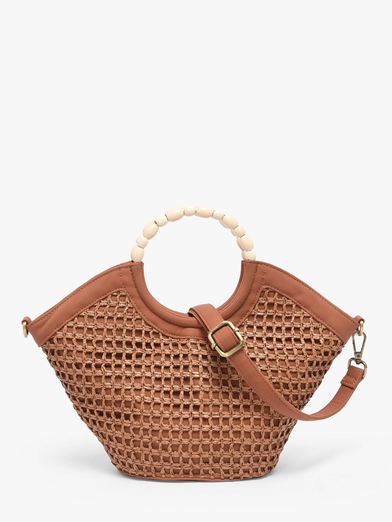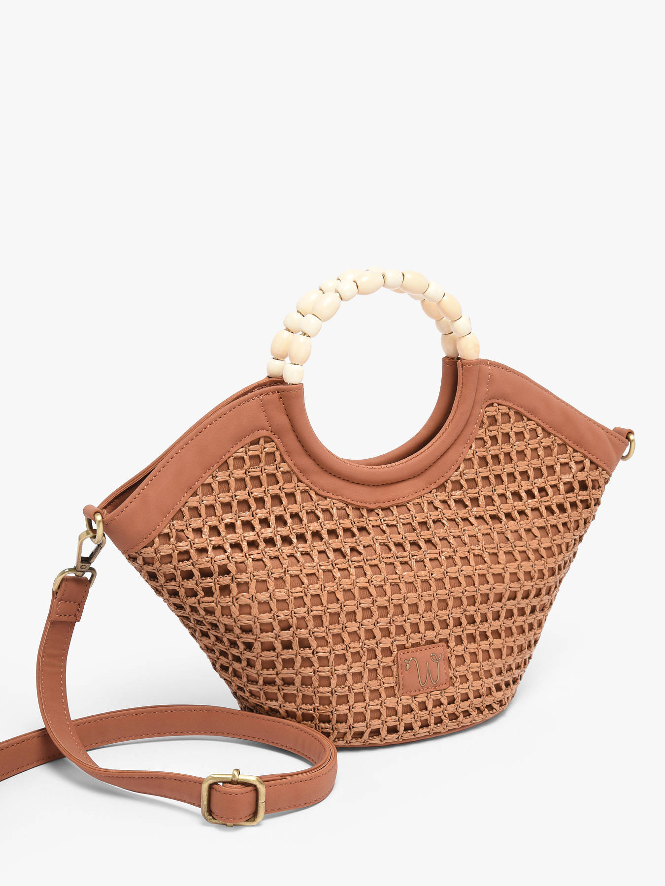 De cross body tas WOOMEN klein formaat uit de lijn Neflier Estival combineert elegantie, praktisch gebruik en een zomerse uitstraling. Het hoofdmateriaal van polypropyleen met gerecycled polyurethaan, in combinatie met de voering van katoen en linnen, zorgt voor stevigheid en lichtheid. De verfijnde afwerking en het handvat bedekt met parels geven het model originaliteit en raffinement. Deze bimateriële tas beschikt over een ritssluiting en een afneembare polyurethaan schouderriem voor flexibel dragen, afhankelijk van je voorkeur. Het gouden resinelogo maakt het ontwerp compleet, waardoor deze tas een functioneel en stijlvol accessoire is, perfect om je zomerse outfits te completeren.