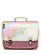 De boekentas heeft een mooie kleur (niet te rose) en tof ontwerp. Ze is stevig, zowel binnen- als buitenkant, en comfortabel om te dragen. Heel erg handig is het flesje aan de buitenkant. Dat geeft ruimte aan koekjes- en boterhamdozen in de tas zelf.